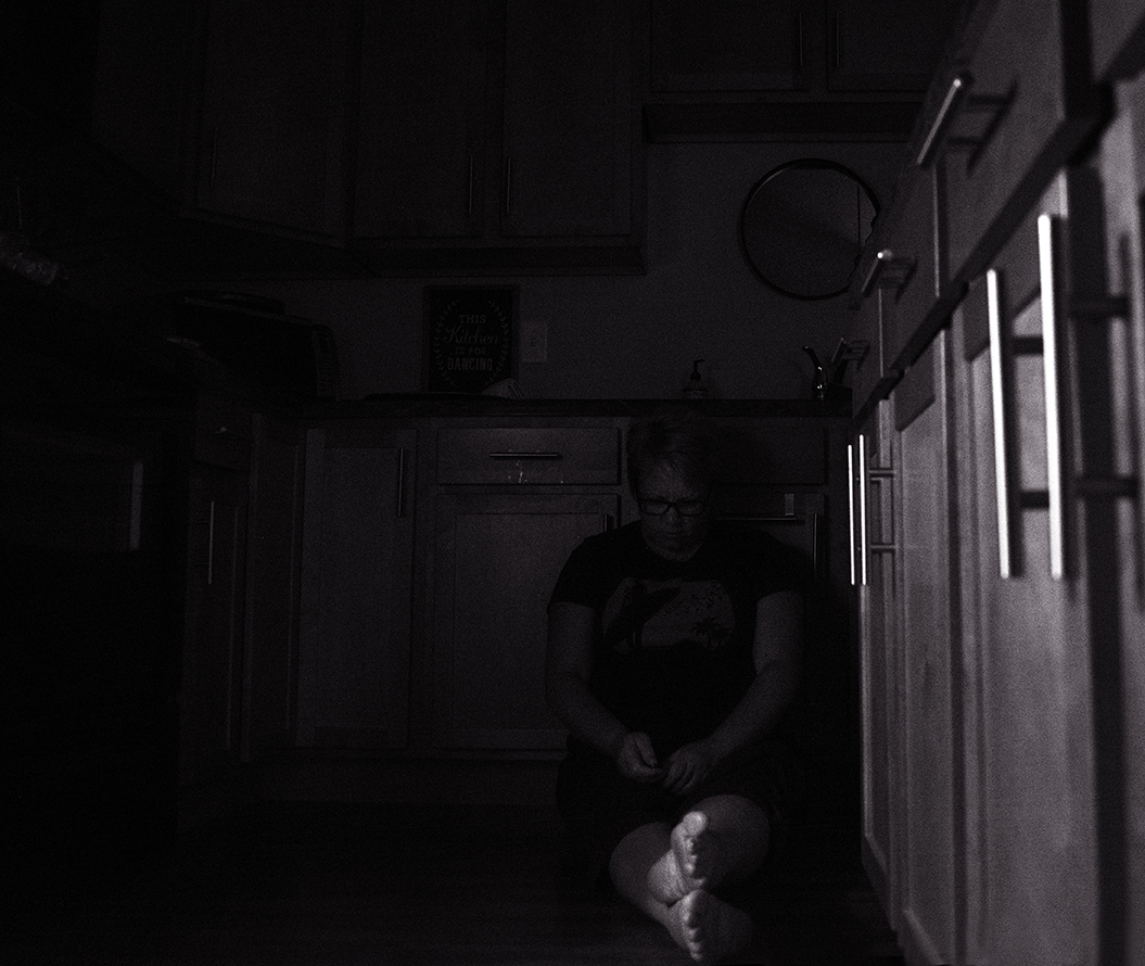 I had an idea for this photo, it's just me being lit by the light from the open fridge. I like it, but it comes across with a kind of dark mood and that really isn't what I was mindful of this week. First off, I cut off all my hair, and that makes me so darn giddy, I can't even contain myself. What fills other people with trepidation and regret makes me want to jump up and down, while smiling so big! I just love getting my hair cut short, love it! I usually get some form of a pixie, but with long side swept bangs, they are my crutch. I have always said that when I lose weight and my face thins out, I will get a really short pixie, but this time I decided not to wait another minute. And I have bleached it and toned it to a white/silver color. And I love it. Yes my face is big, but it is what it is, right? I just feel like myself with short hair. I feel spunky, sassy, maybe even touch sexy. Did I just say that? I feel edgy, artsy, and well just like Christina. When I visit long hair, I feel like an imposter. I feel the opposite of everything I have just said. Weird, huh? I do feel badly because my husband is not a fan of short hair, so that kind of sucks. But I figure it this way. He loves sports, and I knew that when I married him. Why would I marry him knowing that and then expect him to change who he is by expecting him to have nothing to do with sports again? I should have found a husband that wasn't into sports then. If I took that away from him, who would he be, not the guy I married..........When we were dating, I didn't just have short hair, I had shaved hair. He knew this about me, and it just is who I am. You take that away from me and I am not Christina.